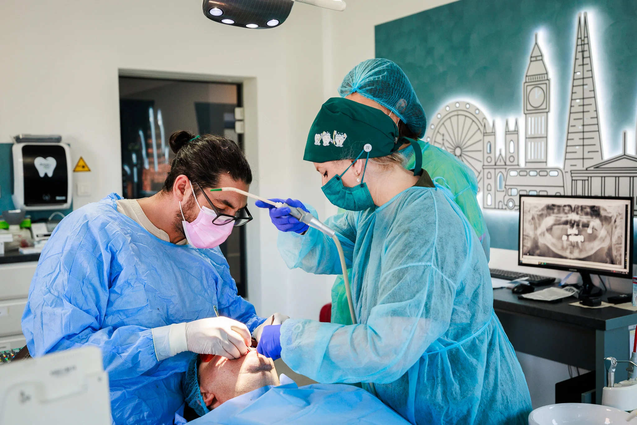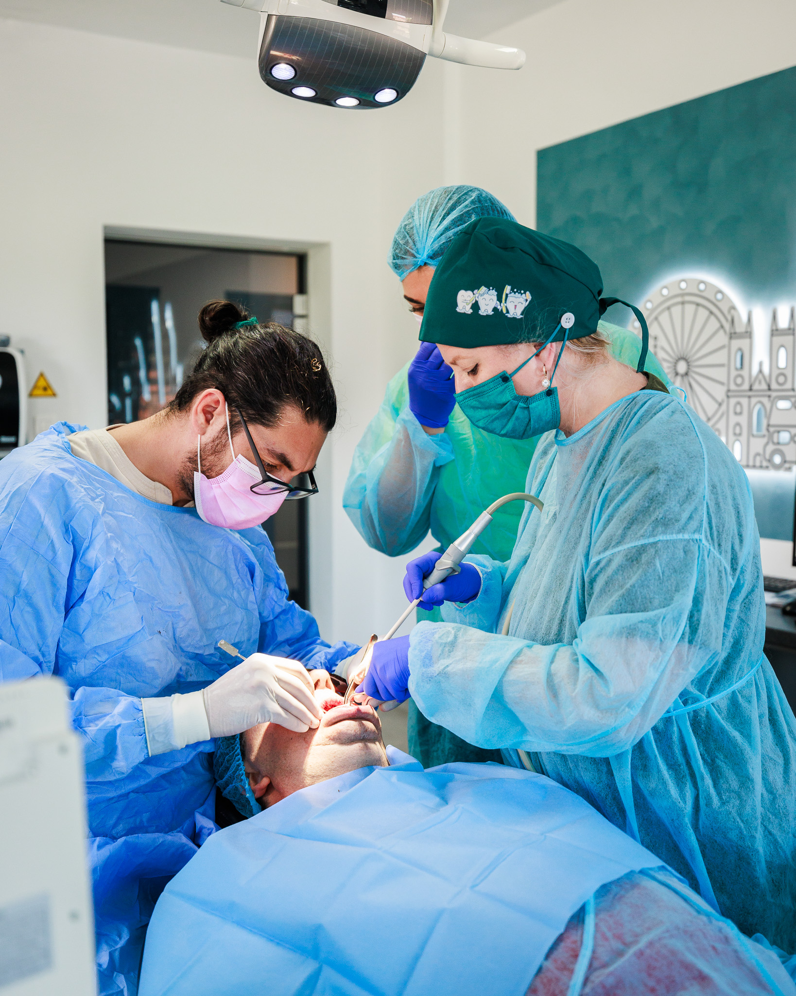 Intervenția se realizează sub anestezie locală și, la nevoie, cu sedare conștientă. Efectuăm extracțiile necesare, inserăm implanturile și aplicăm lucrarea provizorie fixă — în aceeași ședință sau la 24 de ore după intervenție.